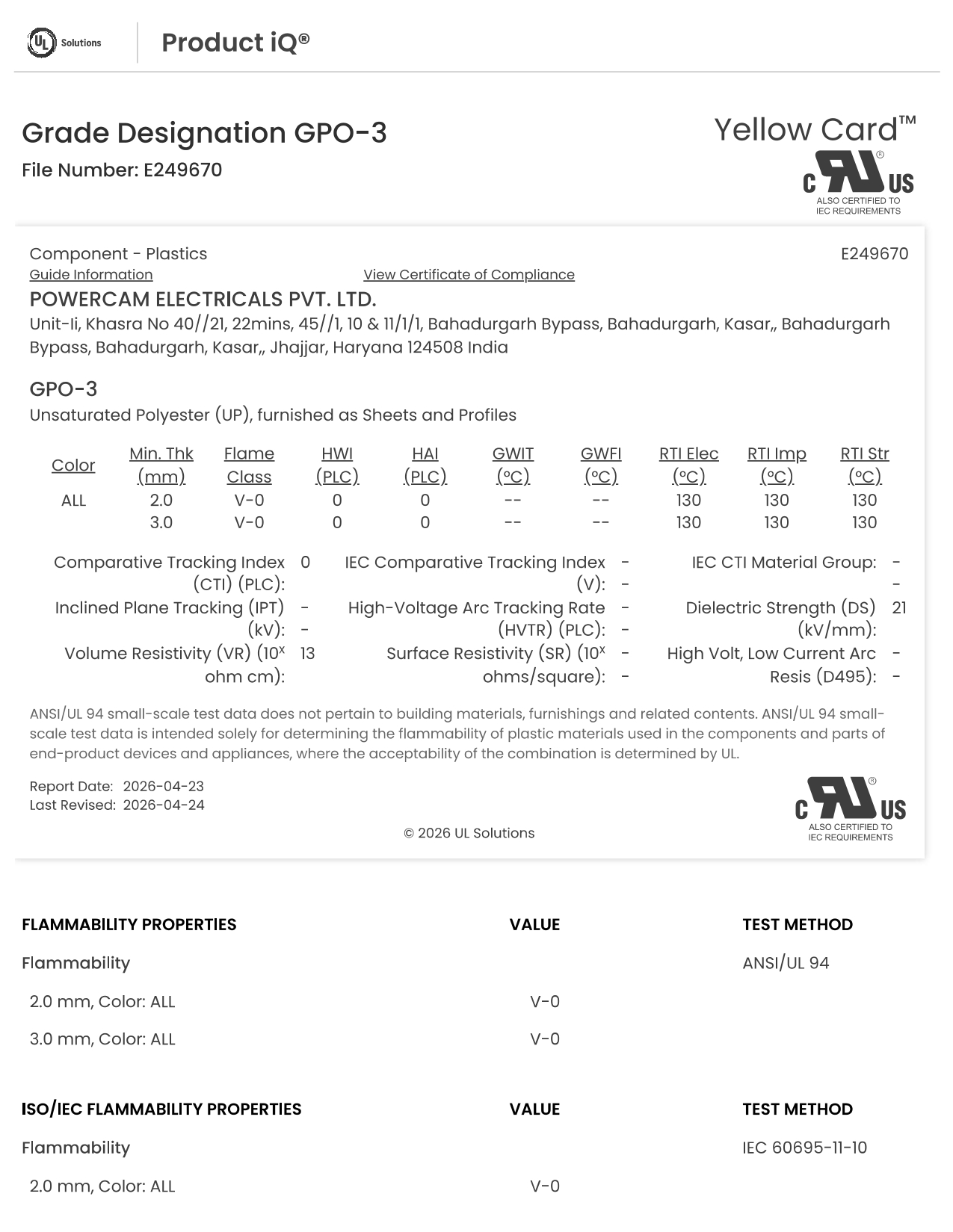 Powercam Electricals (P) Ltd was incorporated in the year 1990 with the objective of providing quality components for Electrical Control Panels, Distribution Boards, EV Charging Station & Bus Ducts. The Company is operating in Indian and International Markets and producing wide range of control panel and distribution board components like Standoff Insulators and Busbar Supports in Thermoset & Thermoplastic Engineered Materials, Medium Voltage Insulators in Epoxy cast resin, Push Buttons, Pilot lamps, Current Transformers, Potential Transformers, Panel locks, Hingers, Handles, Air vents, Documents Holders, terminal connectors, FRP Pultruted Tubes, rods, angles, flats & PVC Heat Shrinkable Sleeves under the Brand name of POWERMAT.